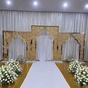 2024 Hot Hawaii Wedding Planer Proveedor Estilo moderno New Look Gold Arch Set de 3 piezas Nuptials Stage Backdrop Stand